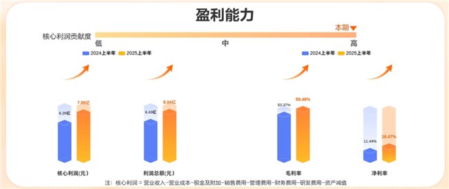盈利能力方面,本期公司的核心利润对总利润的贡献较高,其中核心利润相比去年同期上涨27.05%。