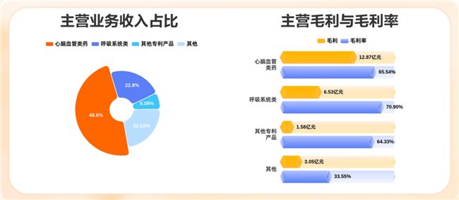 主营业务方面,心脑血管内药占据了公司的收入大头,提供了12.87亿元的毛利润。